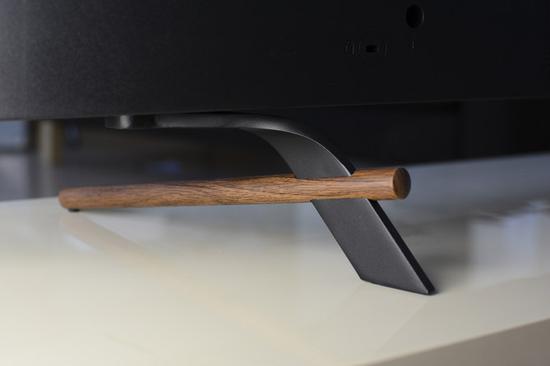 從電視背面,我們能夠更清楚地看到“榫卯”結構的精巧之處,它不需要任何螺絲來固定,只需要通過自身結構就能保持得非常穩固。