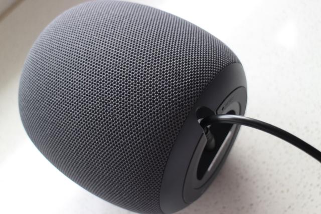 華為AI智能音箱底部采用凹槽設(shè)計(jì),方便插電源的時(shí)候走線,華為AI智能音箱的電源適配器為12V/2A,24W功率,這個(gè)功率并不低;底部還擁有reset復(fù)位按鍵,用于重置音箱使用。