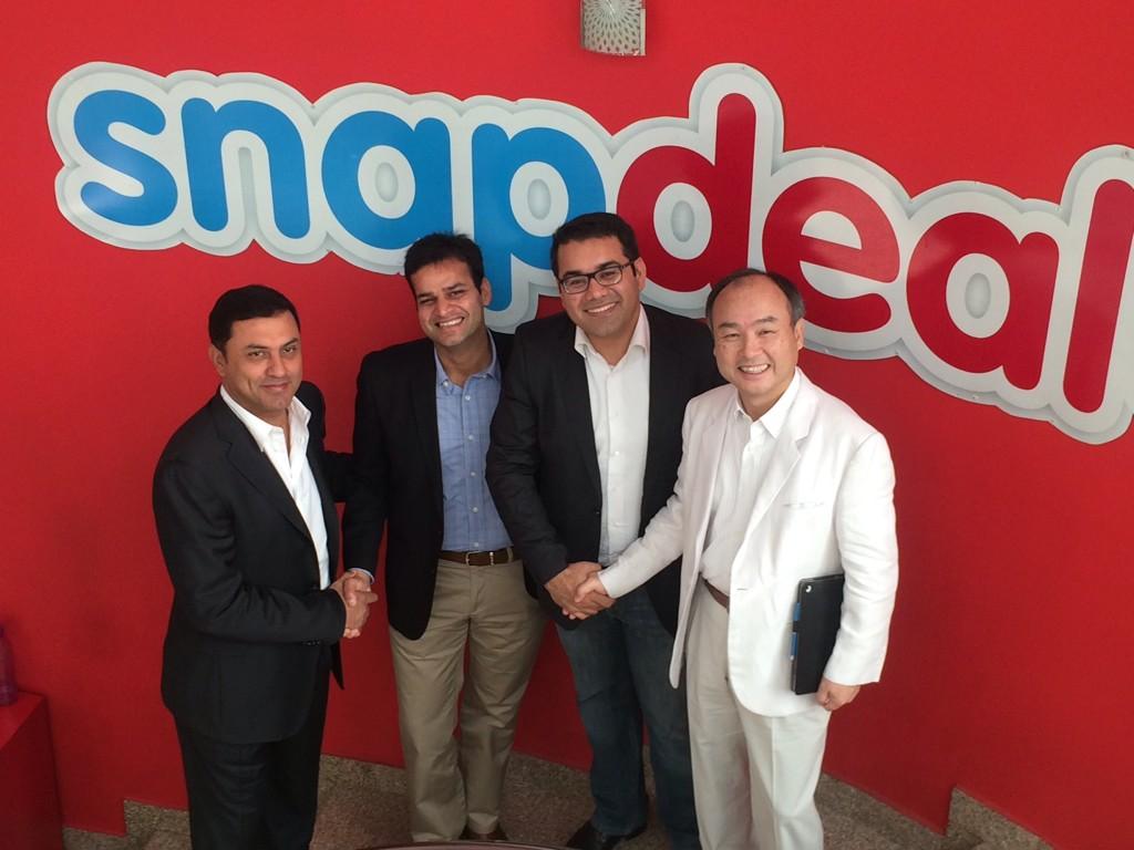 印度電商Snapdeal高管和軟銀CEO孫正義(最右)早前合影