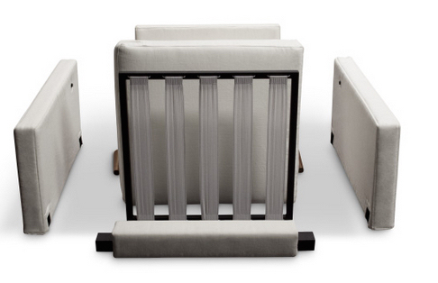 “Campaign”家具與眾不同的是它的設(shè)計組裝過程及其簡單,而且節(jié)省了運輸成本。Sewell設(shè)計的家具在不使用工具的情況下幾分鐘之內(nèi)就可以完成裝配和拆卸。更重要的是,拆卸后的家具完全可以放進盒子并通過UPS和聯(lián)邦快遞發(fā)貨,解決了大型家具令人頭痛的運輸問題。