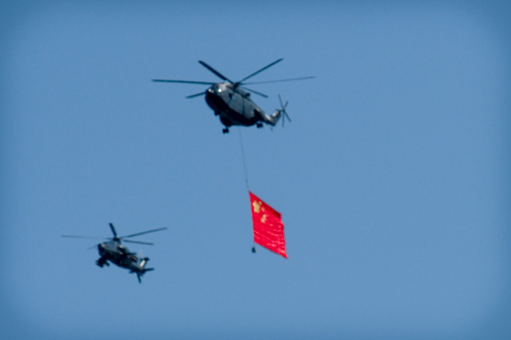 閱兵方陣空中護旗梯隊懸掛的國旗和軍旗鮮艷奪目,吸引了全世界的目光。據(jù)了解,這是我國首次懸掛如此巨大的紅旗進行高速飛行展示,也是世界上飛行速度最快的巨幅紅旗。