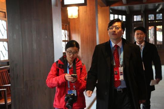 才第一天到烏鎮,“紅衣女子”就采訪到多位大佬。