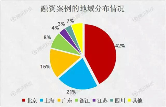 從投資地域上來看,北京、上海、廣東是投資最熱門的地區,其中北京的數量最多,另外浙江、江蘇、四川、福建都有很多企業獲得融資。