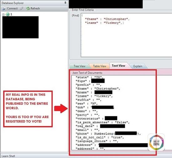 來自美國得克薩斯州奧斯汀的計算機安全專家克里斯·維克里告訴路透社記者,這個數(shù)據(jù)庫存儲了自2000年以來美國所有州以及首都華盛頓約1.91億選民的資料,包括姓名、住址、出生日期、電話、電子郵件地址以及與政黨聯(lián)系等信息。