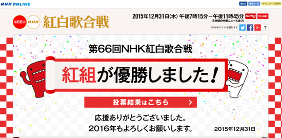 據日本通網站援引日本媒體報道,第66屆NHK《紅白歌會》日前公布出場歌手名單,紅組共有25組藝人,白組總計25組藝人。今年共有包括 Superfly、μ’s 等 10 組藝人是首次登上紅白舞臺。