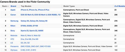 (2015Flickr最受歡迎拍照設(shè)備品牌排行榜)