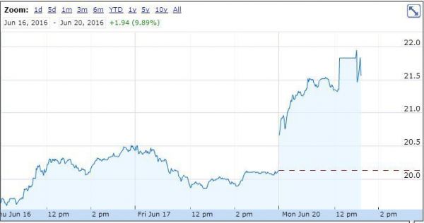 消息公布之后,京東股價(jià)漲幅一度達(dá)到 8.4%