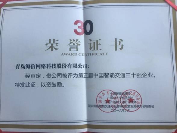 6月19日,第五屆“智能交通三十強”評選結果出爐,海信網絡科技榮登首位。此外,在同期進行的其他評選活動中,海信網絡科技還榮獲2016中國智能交通建設推薦品牌、2016智能交通展會ITS產品金獅獎等大獎,并且在2016中國智能交通建設推薦品牌排名中也被列為首位。
