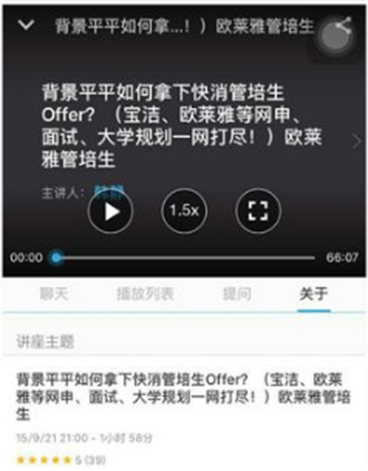 和一本書(shū)的區(qū)別:(好)書(shū)的優(yōu)點(diǎn)是更加深入,內(nèi)容更多。Live的優(yōu)點(diǎn)是交互性,時(shí)效性強(qiáng)(部分領(lǐng)域,如留學(xué),職業(yè)規(guī)劃,時(shí)效性很重要)。Live可以介紹到很多一線人員看的書(shū),兩者是互補(bǔ)關(guān)系。對(duì)于供應(yīng)者來(lái)說(shuō),Live能迅速得到反饋,分享成本更低。