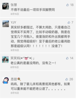 此選項被粉絲媽媽們看作歡樂的“神吐槽”:新手奶爸在育兒方面的笨拙表現,被評為“最沒用的育兒產品,沒有之一”。不過,也有很多平時表現良好的奶爸表示很不服氣,趕緊登錄留言為自己”正名”。與此同時,”姥姥“也因在帶娃過程中任勞任怨而被推崇為”史上最棒的育兒神器”。