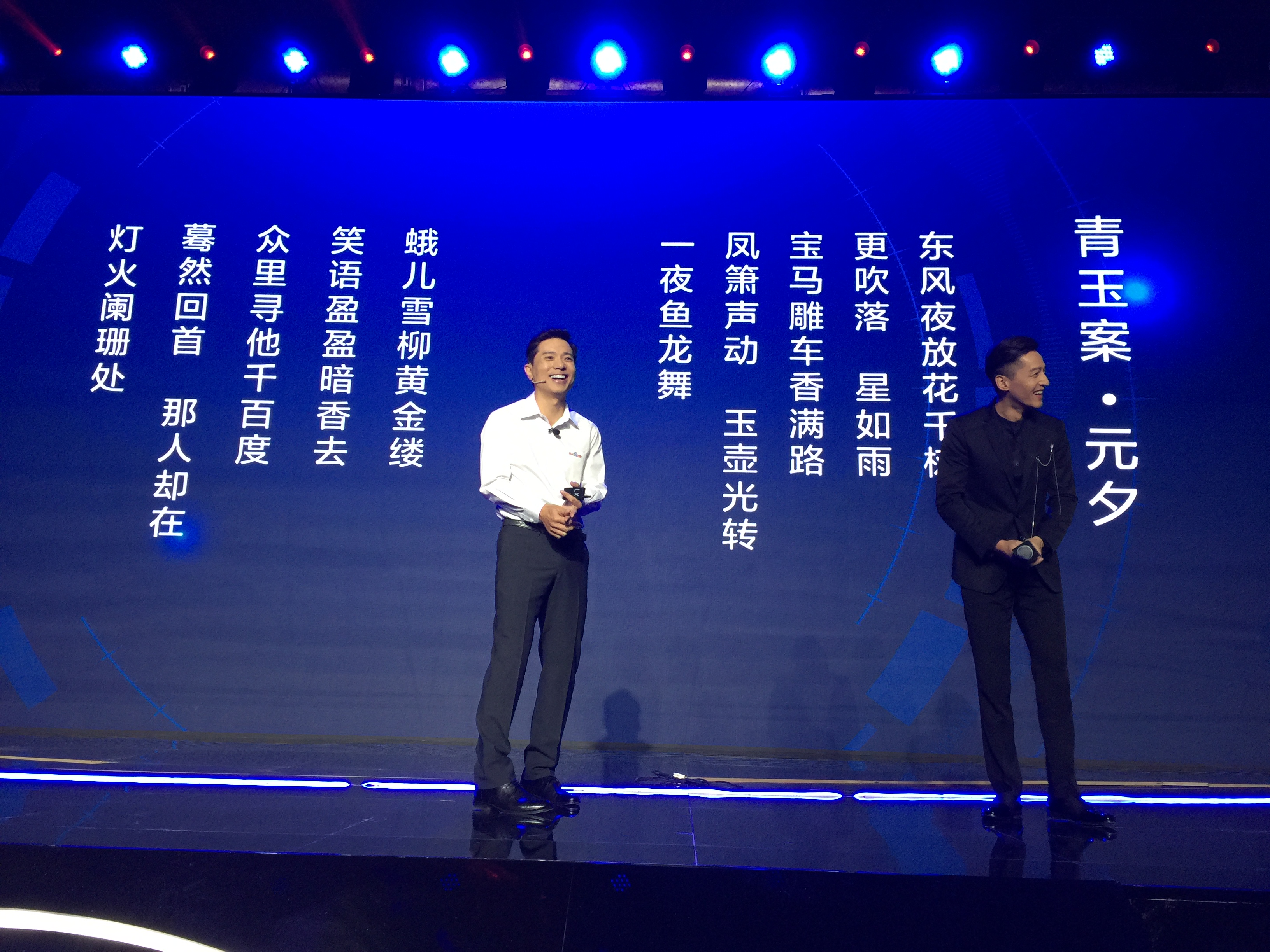 李彥宏介紹,百度人工智能在聽(tīng)了你差不多50句話后就可以模仿你的聲音,在演講最后的環(huán)節(jié),李彥宏邀請(qǐng)著名演員胡歌上臺(tái),在胡歌朗讀了一首宋詞《青玉案 元夕》(百度名字由來(lái))的上闋后,百度人工智能就模仿胡歌的聲音特色朗誦了下闋。不過(guò)還是能聽(tīng)到,合成音還是挺粗獷的,跟胡歌的嗓音還是有明顯區(qū)別,即它可以模仿你的語(yǔ)音特色,但聲線的模仿上還有很大的提升空間。
