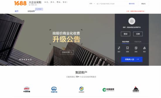 經常與京東并提的阿里巴巴,其1688旗下的大企業采購定位為幫助大型企業、國企等進行采購轉型,從傳統的采購模式升級到陽光電商采購平臺。