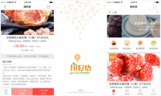 從模式上看,“拼好貨”是一家從生鮮品類切入的社交電商。用戶可以在拼好貨的平臺上,發起價格更加實惠的水果拼單,通過微信朋友圈等社交媒體邀請好友參團,只有達到規定人數時拼單才會生效,人數不足則將自動退款。