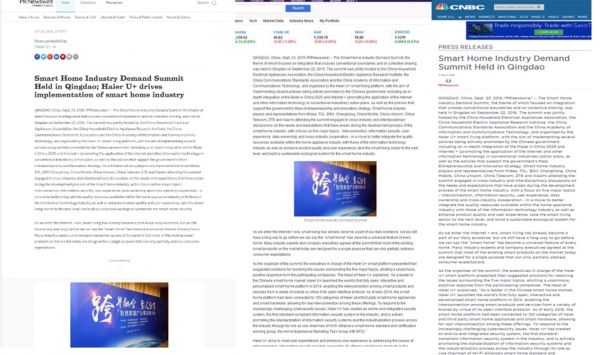 海爾U+聯(lián)合40家企業(yè)召開智慧家庭產(chǎn)業(yè)需求高峰論壇 引200家外媒報道