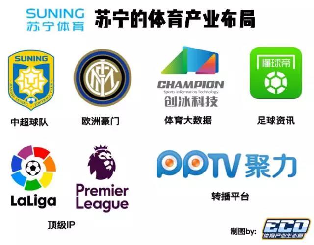 其實,蘇寧的“體育產業生態圈”不僅僅只有PPTV,在入局體育產業初期,蘇寧以體育贊助為切口,對體育產業進行了初試水。