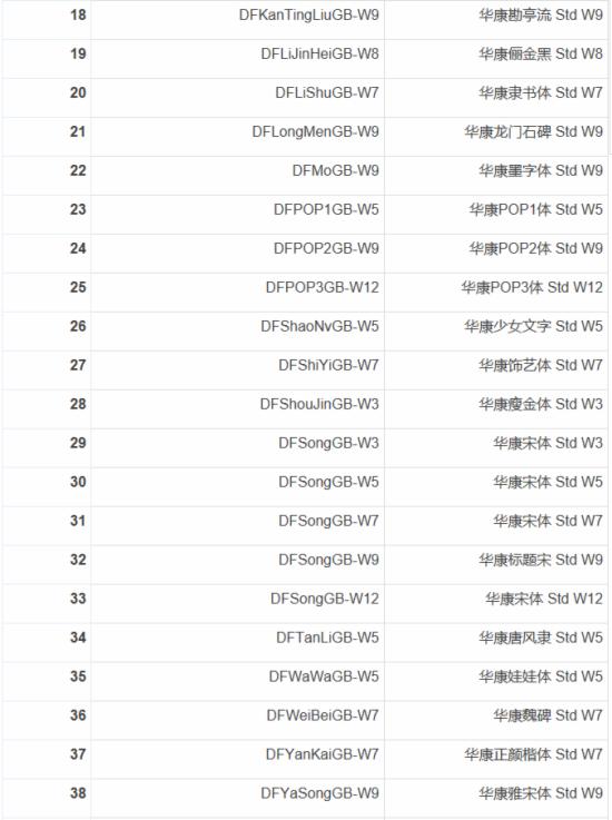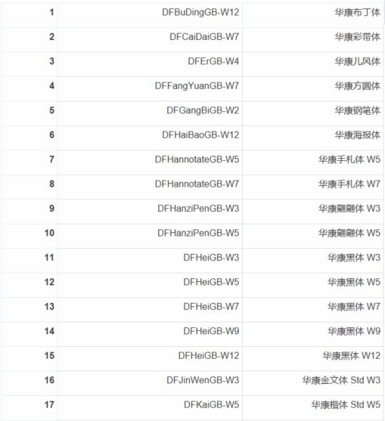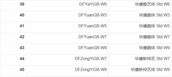 根據阿里巴巴公布的消息,這45款華康字體清單包括: