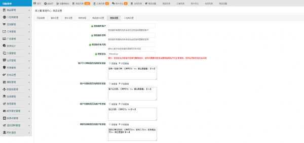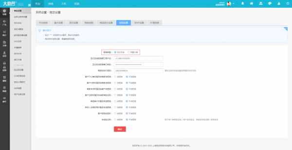 大商創后臺支持阿里大于和互億無線。