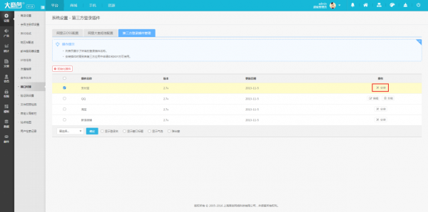 大商創目前支持微信端,qq,以及支付寶的第三方登錄,設置也非常簡單: