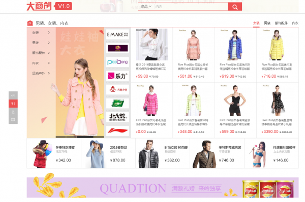 首先是大商創,整個首頁還是非常大氣的,頁面效果,細節做的比較好,比如分類頁的屬性篩選彈出效果,購物流程,分類頁等等,都還算不錯。