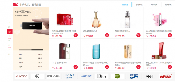 樓層來看,大商創每個樓層比較豐富,有品牌,廣告,和商品組合,看起來大氣: