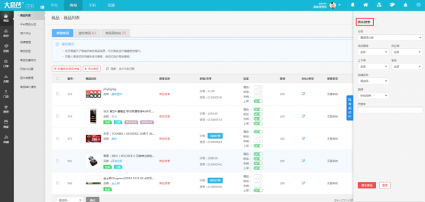 后臺的頁面操作體驗舒適度,大商創也更好一些,比如商品高級搜索模塊