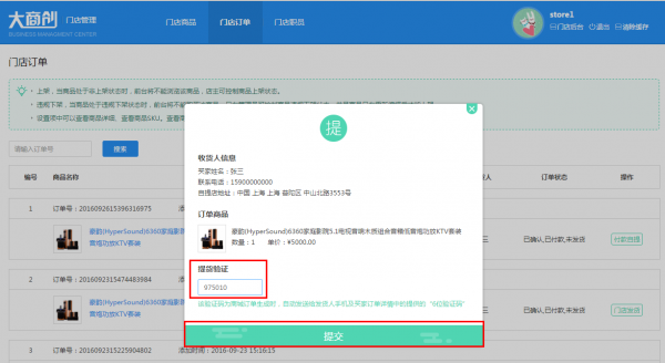 首先是大商創,比較重要的是大商創具備門店功能,而且我發現有一個獨立的門店后臺,這點的體驗非常好,平臺方和入駐商都可以設置門店,用戶通過“上門自提”付款之后,可以就近取貨,憑借序列號取貨。