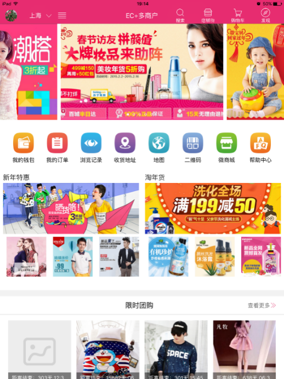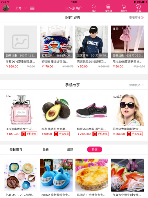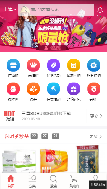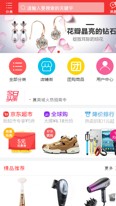 而小京東的手機端就相對而言比較吃虧,因為pc功能不如大商創,因此可能就稍顯簡單,只有通用的團購,等促銷模塊: