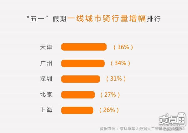 摩拜發布五一騎行報告 北上廣騎行量增8%