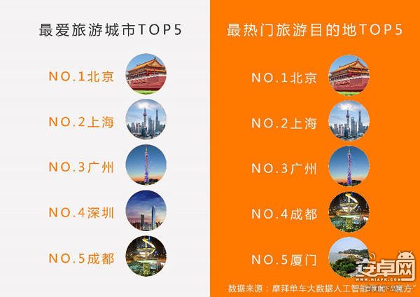 “五一”期間,許多人趁著難得的假期出門旅游,已在全國50多個城市提供服務的摩拜單車,則成為游客們在異地游覽城市風景常用的代步工具。根據摩拜大數據平臺“魔方”統計的用戶異地騎行數據顯示:最熱愛旅游的城市TOP5分別是北京、上海、廣州、深圳和成都;最吸引游客的城市TOP5則分別是北京、上海、廣州、成都和廈門。