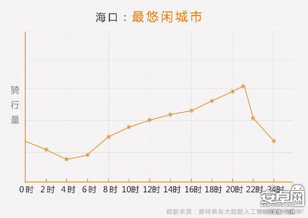 相比之下,作為騎行“最悠閑”的城市,海口的騎行高峰從傍晚18時開啟,一直持續到21時達到峰值。萬綠園、人民公園、假日海灘等景點等備受外地游客喜愛。這可能是受到游客占比較高、出行時間分散的影響,且海口天氣較為炎熱,適合傍晚以后再出門。