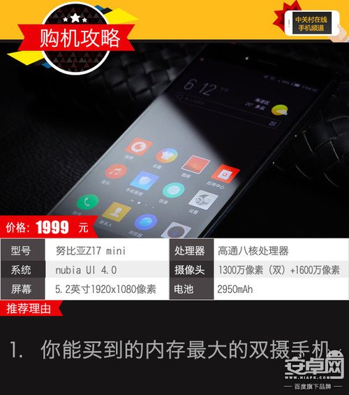 努比亞Z17 mini搭載了高通驍龍653處理器,采用了6GB內存+64GB機身配置,支持雙卡盲插、全功能NFC等功能,雖然只有2950mAh容量電池,但配合獨創的NeoPowerN2.5省電技術、不輸市面上4000mAh電池,讓你在游戲中再也不用擔心卡頓或電池沒電帶來的煩惱。