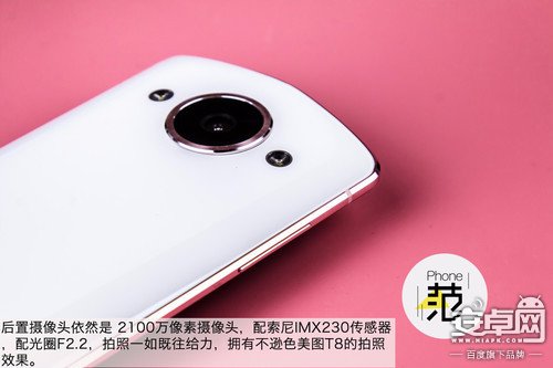 后置攝像頭依然是 2100萬像素攝像頭,配索尼IMX230傳感器,配光圈F2.2,拍照一如既往給力,擁有不遜色美圖T8的拍照效果。
