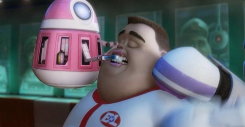 科幻動畫電影《機器人總動員》中,所有的人類都墮落成完全依靠電腦的幫助才能吃喝拉撒的胖子們,不會自己走路,都有機器人伺候。雖然因為地方小大家離的都很近,但是人們每天的生活主要是坐著看電視購物頻道,以及打電話?;ハ嘀g也沒有什么感情交流。所有人都是經濟學家設定的理性人,從小接受的電腦教育就是要消費消費再快點消費。