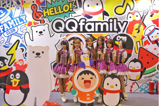 如果說人氣最高的QQ卡通形象,當然還是企鵝帶隊的QQfamily啦。這次QQfamily一席朋克風出戰,涂鴉貼紙的潮流藝術裝置方式,讓萌寵們也有點酷酷噠。于是S.I.N.G女團也來留個合影。