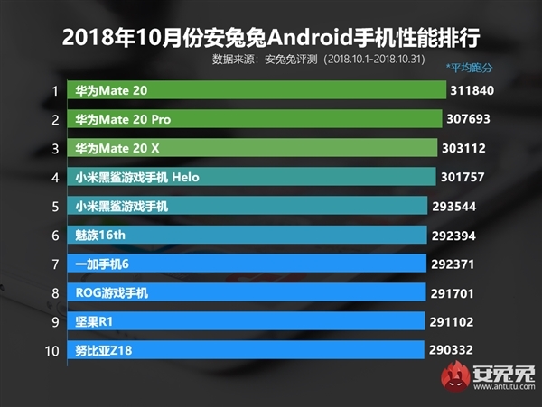目前來看,安兔兔排行榜中,安卓陣營里面排名前三的手機均為搭載麒麟980芯片的華為Mate 20系列,最高分數為311840,而搭載驍龍845芯片的黑鯊游戲手機helo為目前845機型中最高分301757分。以此來看,驍龍8150相比于麒麟980在性能方面提高了16%,與上一代驍龍845相比提高了20%。