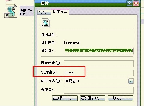 圖2 病毒創建的快捷方式,可見按空格會導致病毒程序運行
