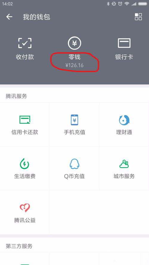 第三步:點擊頁面中的“零錢”,然后點擊零錢界面中“提現”下方的零錢通標志,進入開通頁面。