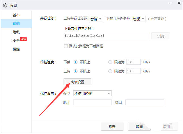 5、點擊左側中的 傳輸之后,點擊高級設置