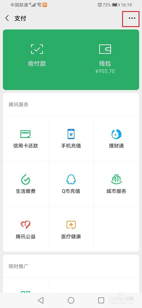 第三步進(jìn)去微信支付之后,點(diǎn)擊三點(diǎn)圖標(biāo),如下圖所示:
