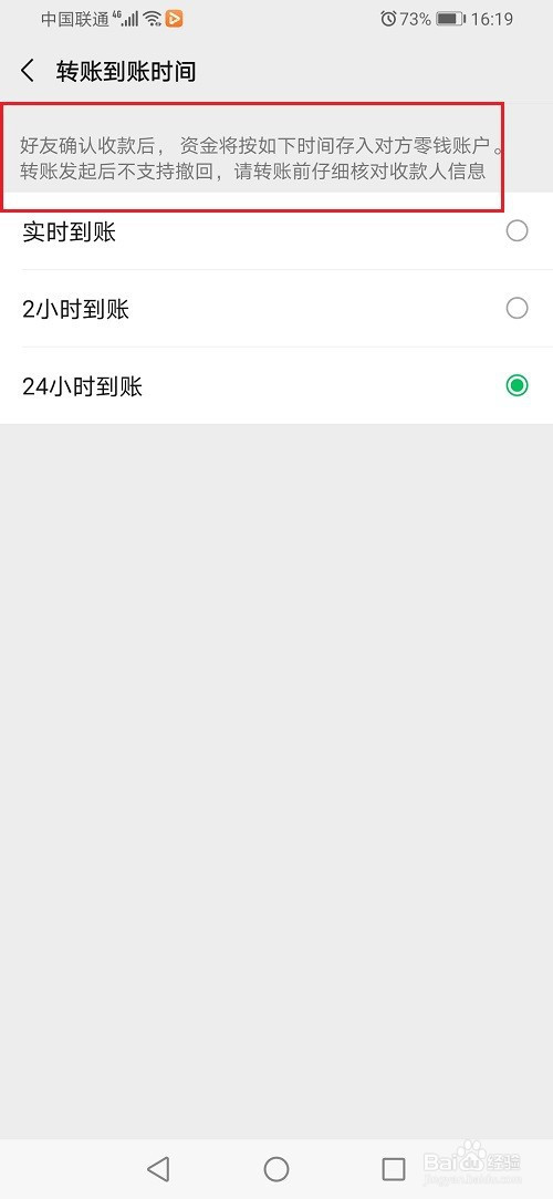 第四步進(jìn)去之后,點(diǎn)擊轉(zhuǎn)賬到賬時(shí)間,如下圖所示: