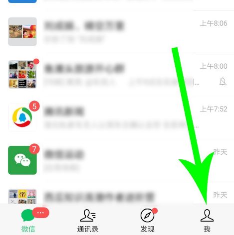 2、打開微信消息列表點擊“我”,打開個人中心點擊“設置”。