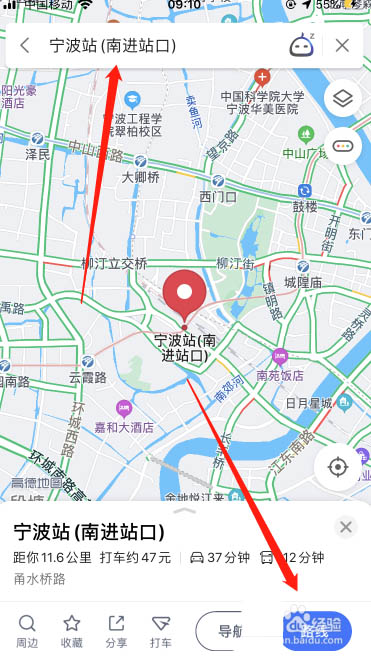 2、選擇好到達的目的地,點擊【路線】
