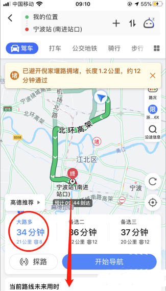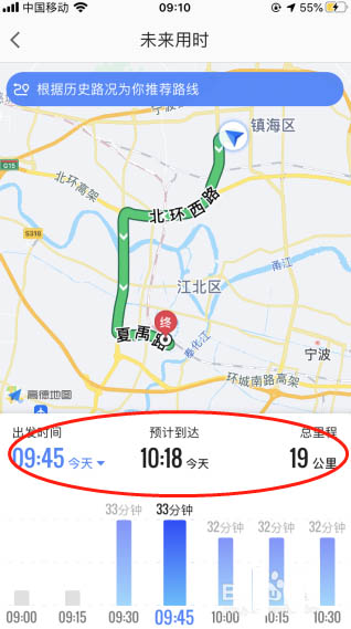 3、我們可以看到現在出發需要多少時間,屏幕往下拉,有一個未來用時