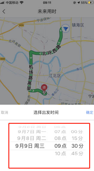 5、這里已經顯示 就今天出發時間,預計到達時間,下面也有預估時間,出發時間出可以調整時間