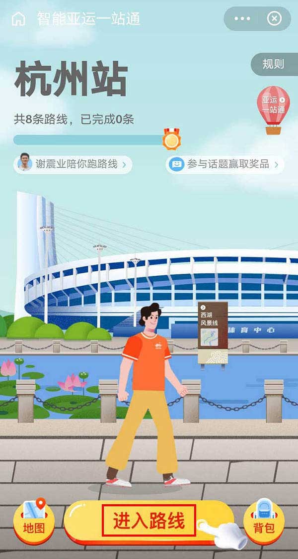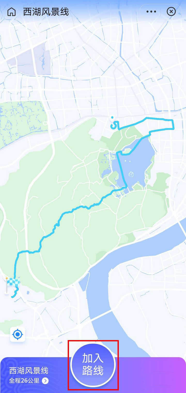 4、頁面顯示西湖風景線的地圖,點擊加入路線;