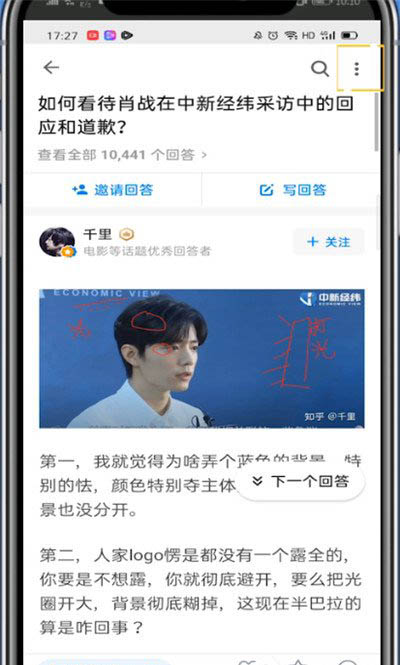 2、打開你喜歡的文章,點擊右上角的三個點;