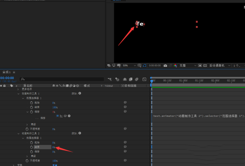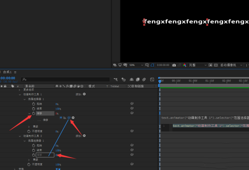5、按住Alt鍵,點擊第一個不透明動畫中偏移前面的時鐘圖標,鏈接到第2個不透明度動畫中的偏移上,結束設為百分之3左右。