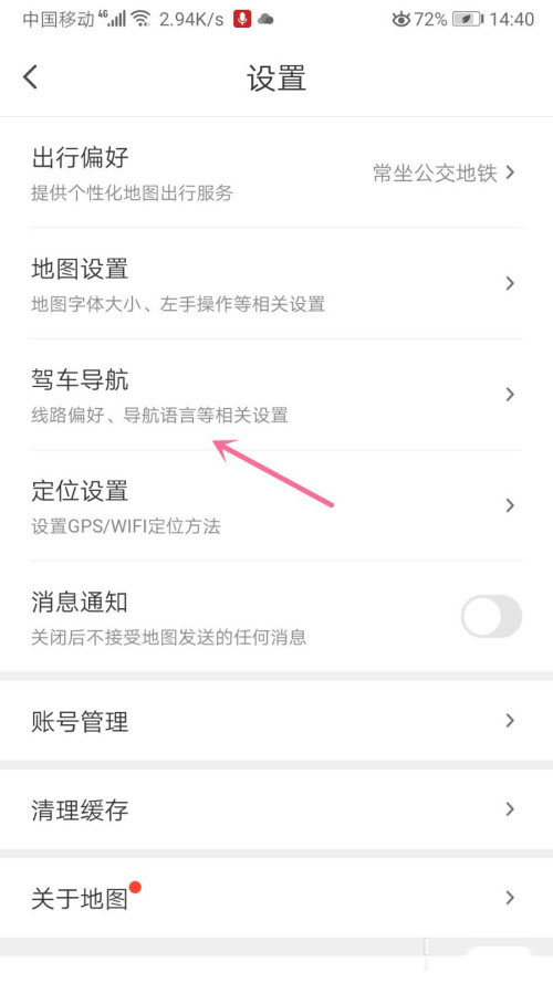 4、打開設置的頁面選擇“駕車導航”選項