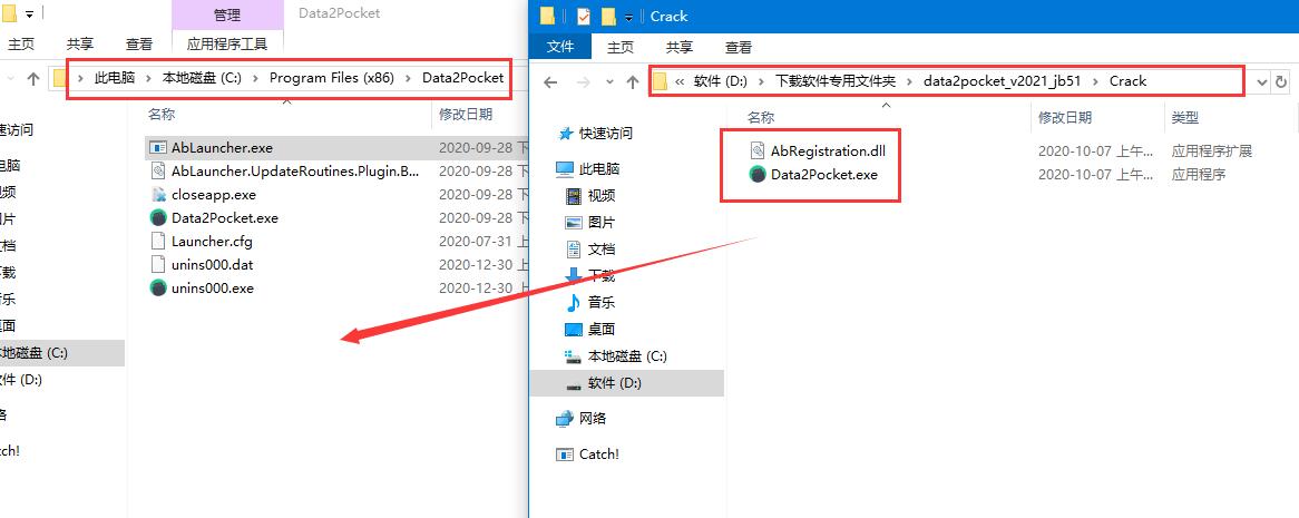 6、將軟件包內Crack里的補丁復制到軟件安裝目錄下(默認c:/Program Files(x86)/Data2Pocket)
