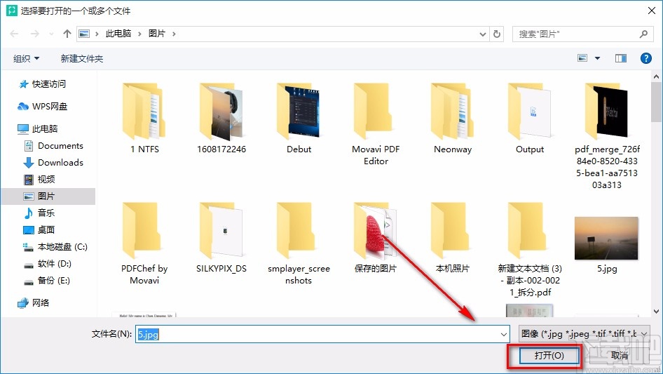 2.接著在文件添加頁面中,我們將需要進行裁剪操作的圖片選中,再點擊頁面右下角的“打開”按鈕即可。